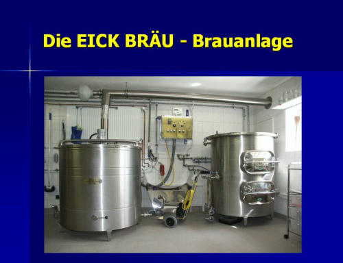 Klicken Sie hier auf den Aufkleber-Button undes öffnet sich eine kleine Präsentation die zeigt,wie in der Eick Bräu Braumanufaktur Bier gebraut wid.